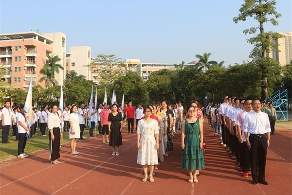 為熱烈慶祝中華人民共和國成立70周年,9月30日上午,在中山市教育工委、市教體局統一部署下,坦洲實驗中學舉行“禮贊新中國 奮進新時代”大型升旗活動,真情謳歌新中國70年輝煌成就,深切表達對祖國母親的祝福。