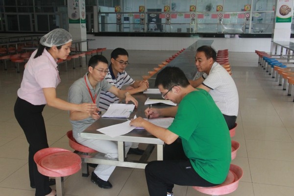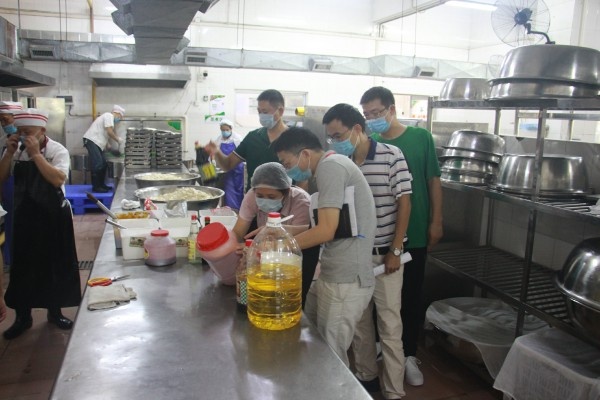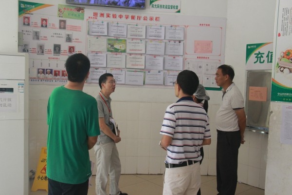 隨后,張志略主任來到學校食堂,對食堂內外環境衛生、食堂員工個人衛生進行了仔細視察:對食堂儲物間、食物制作間、分餐間、留樣柜等進行了詳細檢查及問詢;觀看食品初加工、烹調環節,確保食物的干凈衛生,保障各種用料的規范;對食堂食譜編制、原料采購索票索證以及各種日常記錄表格進行了對照查看,強調學校食堂必須嚴把原料采購、加工制作每一關,做好蔬菜農藥殘留檢測工作,保證師生用餐安全。