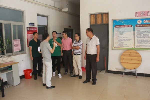 9月6日上午,坦洲鎮教育事務指導中心主任張志略、德育專干張凱蒞臨坦洲實驗中學檢查指導安全衛生工作。學校梁格青校長、蔡權明副校長、王懷東主任和柳清泉副主任陪同視察。