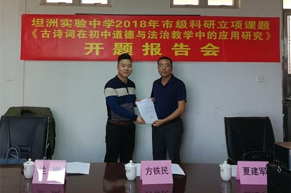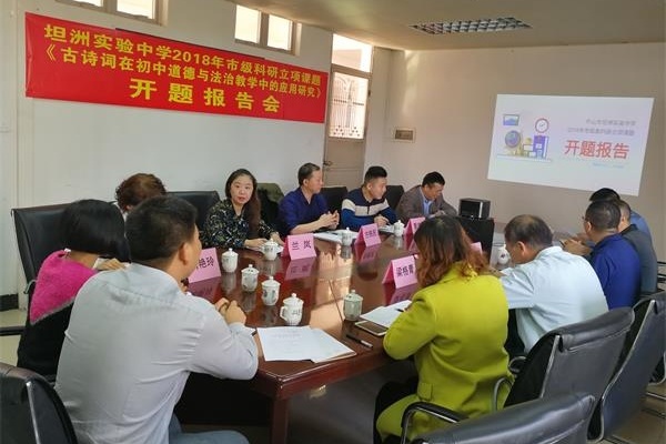 11月23日下午,中山市坦洲實(shí)驗(yàn)中學(xué)行政三樓會(huì)議高朋滿座,中山市教研室教研員方鐵民、蘭嵐、夏建軍齊聚中山最南端的邊陲小鎮(zhèn),為該校2018年市級(jí)立項(xiàng)課題《古詩(shī)詞在道德與法治教學(xué)中的應(yīng)用研究》開題把關(guān)指導(dǎo),坦洲實(shí)驗(yàn)中學(xué)校長(zhǎng)梁格青、教學(xué)副校長(zhǎng)高艷玲、教導(dǎo)處副主任何曉華等領(lǐng)導(dǎo),以及該課題的全體成員出席了這場(chǎng)被嘉賓贊為“高大上”的教科研活動(dòng)。