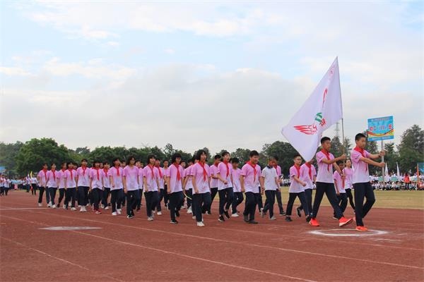 上午8∶30,在莊嚴的升旗儀式后,坦洲實驗中學校長梁格青先生宣布本校第15屆田徑運動會開幕。接著副校長蔡權明先生致開幕辭。他首先對校運會的勝利召開表示熱烈的祝賀,對精心籌備運動會的工作人員表示感謝。接著宣讀了坦洲實驗中學過去一年來所取得的輝煌成績。他說校運動會是本校的一次重大體育盛事,是廣大師生展示風采、促進交流的舞臺,對于加強校園精神文明建設,提升校園文化品位具有重要意義。運動會既是對學校體育水平的一次集中檢驗,也是學校素質教育、陽光體育活動的一次展示;既是對學生身體素質、競技水平、心理承受力等綜合素質的考驗,也是各參賽班級集體意識、競爭意識、頑強拼搏精神的綜合體現。最后希望大家齊心協力,力爭把本次運動會辦成一次“揚體育精神、展青春風采”的體育盛會!運動場上彩旗、國旗與校旗迎風飄揚。隨著號角聲、發令聲的響起,本屆校運動會正式拉開序幕。