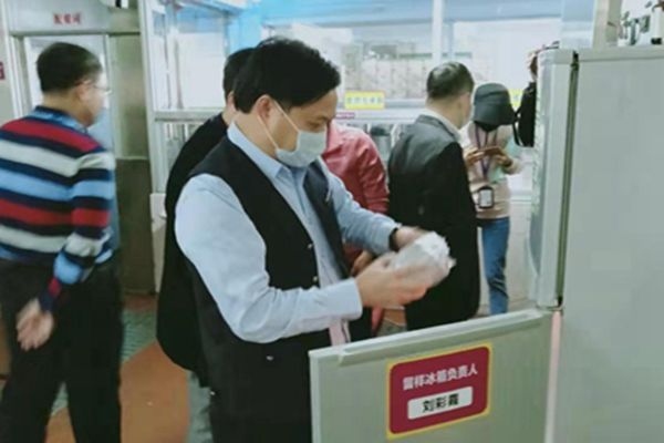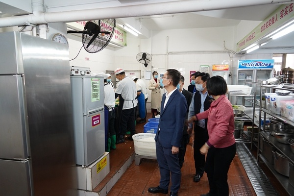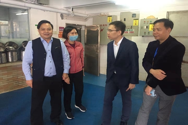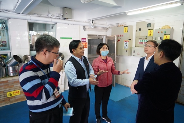 為進一步加強學校食堂食品安全監管,有效預防學校食堂食品安全事故,保障廣大師生飲食安全,提升學校食品安全監管工作成效,2019年12月20日上午,坦洲鎮黨委委員李家豪同志陪同中山市發改局領導、經信局領導、市場監督管理分局領導一行6人,到中山市廣大匯翠學校食堂開展飛行檢查,匯翠學校校長陳秀文陪同檢查。