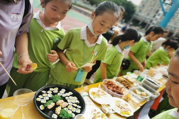 接下來,是孩子們最喜歡的美食售賣活動,他們貼好了自己精心繪制的美食招牌,與家人一起集思廣益定下了創意無窮的廣告詞,加上他們大聲的吆喝叫賣,吸引了許多顧客。而孩子們在售賣和購買過程中討價還價,感受到了生活的其樂無窮,感受到了掙錢的來之不易。