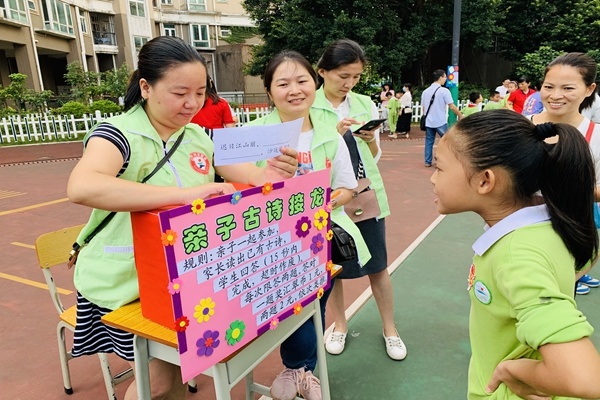 首先,孩子和家長們參與了老師精心策劃的游戲——親子猜謎語、親子古詩接背、親子成語接龍、親子心有靈犀、20秒親子踢毽子、親子投球、趕“鴨子”進籠等游戲,賺取了屬于自己的匯翠幣。