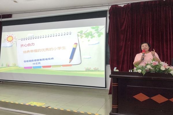 2019年10月10日晚上7時整,匯翠學校一年級330多名家長齊聚中學部四樓報告廳,參加國家高級家庭教育指導老師、百分媽媽生活學堂系列讀本作者、兒童健康成長管理倡導者、踐行者---葉文芳老師的《齊心合力,培養幸福的優秀小學生》專題講座。