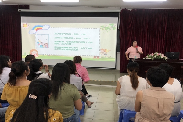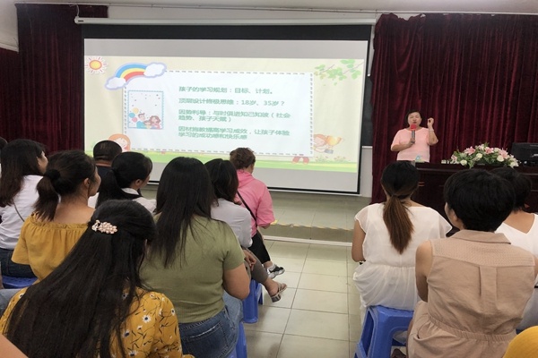 葉老師為家長們詳細解讀孩子學習過程中如何激發孩子的學習興趣,培養良好的學習習慣,鍛煉語言表達和溝通能力以及孩子們在學習生活中可能遇到的各種問題的解決方法。整個過程中,葉老師講解到位,言語幽默。家長們全神貫注認真聆聽,甚至有些家長還拿出筆和本子做起了筆記。