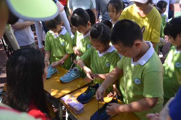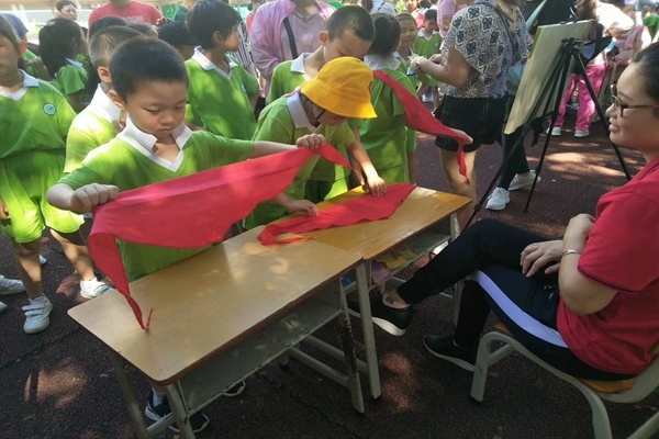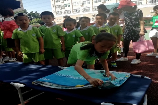 第二個議程是自由活動——參加能力大考驗。老師們精心準備了“我會系紅領巾”、“我會疊被子”、“我會綁鞋帶”、“我有一雙干凈的小手”、“我會整理書包”、“我會疊衣服”“、“我會綁跳繩”、“我會整理課桌”8個項目來考驗孩子們的生活自理能力。當不少家長發現孩子疊被子有困難時,都及時的耐心指導,不僅提高了孩子們的自立能力,同時也讓家長意識到生活中應該養成好習慣。