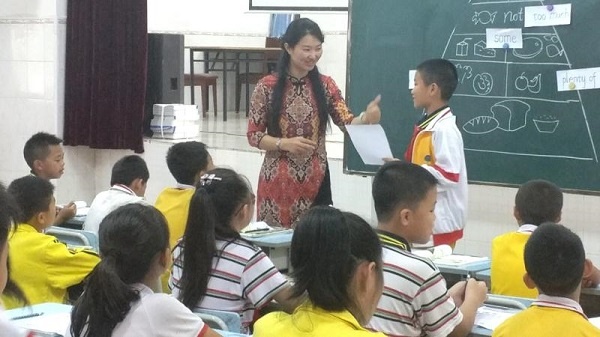 示范課結束后,盧云老師跟華特雅學校小學部全體英語老師進行了座談交流。老師們踴躍地向盧老師請教教學中的困惑,盧老師都一一地給老師們作了專業(yè)的解答和指導。盧老師在講話中指出:我們英語老師要放低姿態(tài),拉近與學生之間的距離,這樣才有利于師生之間的交流。在課堂教學導入的時候,教學內容要貼近學生的興趣,課堂教學設計要關注中下層學生,問題設計要難易適中,螺旋上升。對于民辦學校學生英語基礎較為薄弱、成績參差不齊的情況,盧老師給老師們作了非常有建設性的指導,她建議可以物色一位優(yōu)秀學生給學困生當小老師,分層要求,由優(yōu)帶差,共同進步。