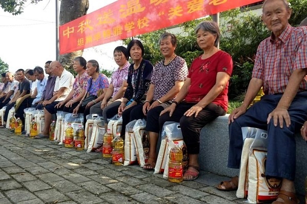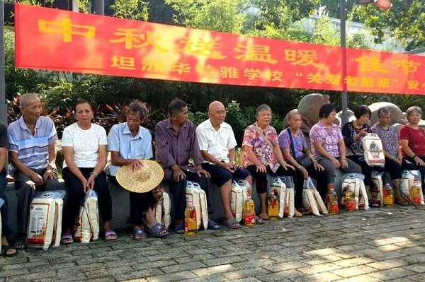 為了加強學生的思想品德教育,培養學生的社會責任感,繼承和發揚中華民族尊老敬老的優良傳統,2018年9月20日上午,坦洲華特雅學校組織了部分師生來到坦洲鎮沾涌村,開展“中秋送溫暖 佳節獻愛心”的愛心公益活動。他們代表全校2600多位師生員工,為沾涌村的爺爺奶奶們送上中秋禮物,也給前輩們送上全校師生的關懷與祝福。