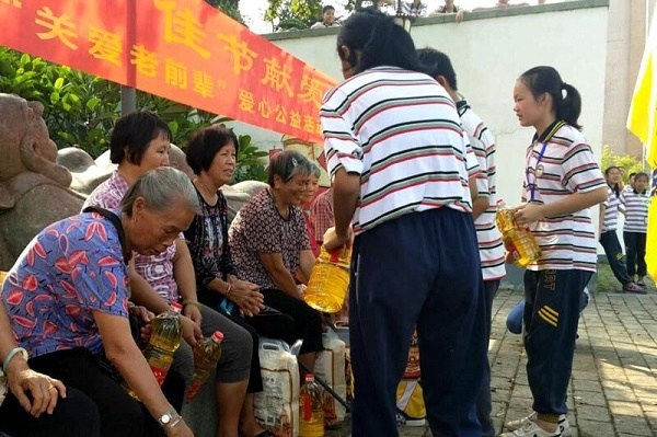沾涌村共131位老前輩接受了學校的節日禮物。老人家一個個笑逐顏開,紛紛拉著學生的手,異口同聲地說,非常感謝學校董事會,感謝全校老師和學生,感謝大家在節日前夕送來學校的關懷。老人家們還寄語同學們,一定要好好學習,健康成長,多孝順父母,做一個有愛心的好孩子。