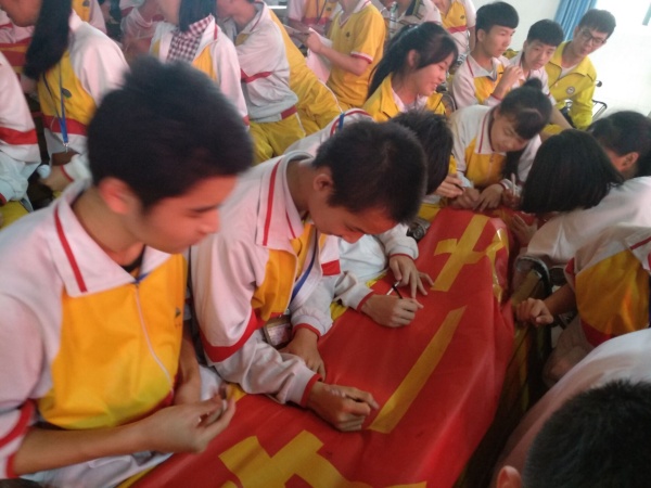 副校長(zhǎng)何偉華作了重要講話,他先向辛勤工作的全體九年級(jí)老師和孜孜以求的全體畢業(yè)生表示真誠(chéng)的問(wèn)候。肯定了三年以來(lái)全體師生銳意進(jìn)取所取得的成績(jī),對(duì)本屆畢業(yè)生寄予了厚望,指出了奮斗的目標(biāo)。也要求初三全體師生同舟共濟(jì),全力以赴、拼搏奮斗,勇創(chuàng)佳績(jī)!