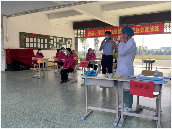 為扎實做好疫情防控背景下返校前的各項準備工作,提高學生返校后學校的疫情防控與應急處理能力,促進學校防控工作的規范化、程序化,2020年4月15日下午,坦洲鎮安阜小學開展了新冠肺炎疫情防控應急處置演練。安阜小學全體教職員、安阜小學衛生副校長高建國同志、教指中心李智杰同志、張少霞同志以及學校家長志愿者代表參與此次演練活動。