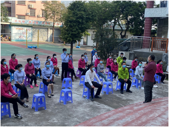 演練結束后,學校及時召開了演練效果評估總結會,衛生副校長高建國同志進行現場點評,對此次演練和學校為疫情所做的防控硬件設施準備給予了充分肯定,并向教職工們和家長志愿者普及了新冠肺炎的傳染源、傳播途徑等相關知識,針對學校的實際情況提出了日常防控的一些建議。最后,校長余壁峰對本次演練做總結,肯定了演練前學校的物資等各方面的準備工作及演練過程中教職工與家長志愿者務真求實的態度和扎實細致的工作表現。