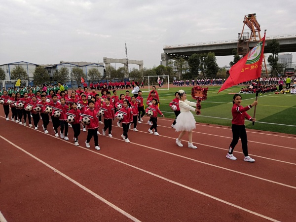 早上8:00,運(yùn)動(dòng)會(huì)入場(chǎng)式在《運(yùn)動(dòng)員進(jìn)行曲》中拉開(kāi)了序幕。走在最前面的是學(xué)校彩旗隊(duì),由各班挑先的成員組成。高遠(yuǎn)的藍(lán)天,紅的跑道,綠的草坪,鮮艷的彩旗,在金色的陽(yáng)光下,構(gòu)成了一幅絕美的畫(huà)卷。看,四1班的孩子們走過(guò)來(lái)了,他們身著特色班服,邁著整齊的步伐,喊著響亮的口號(hào),手持足球,精神抖擻地走過(guò)主席臺(tái)。六1班的大哥哥大姐姐們也走過(guò)來(lái)了,他們的口號(hào)與眾不同“發(fā)型高貴,氣質(zhì)到位,全場(chǎng)吶喊,六1萬(wàn)歲!”全場(chǎng)忍俊不禁。