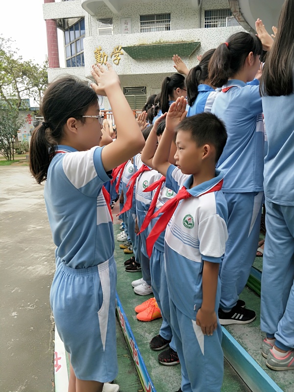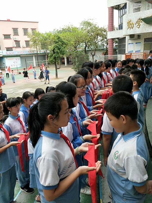 安阜小學少先隊開展“喜迎六一 祝福祖國”向新中國70周年華誕獻禮活動,5月30日下午,坦洲鎮安阜小學大隊部在操場舉行“扣好人生第一粒扣子” 新生入隊儀式。115名一年級的學生,經過兩周的隊前學習,今天欣喜地佩戴上紅領巾,光榮地加入中國少年先鋒隊組織。