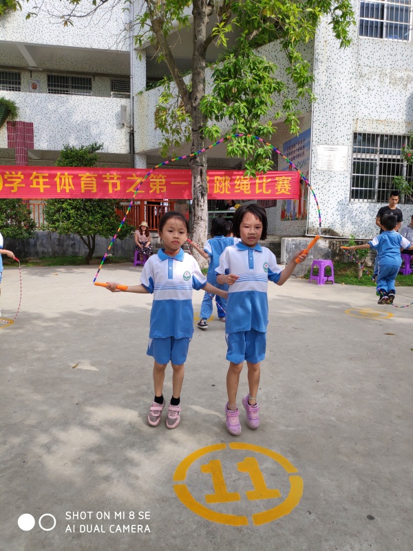 第一屆跳繩比賽全校各班參加,形式多樣,參與的學生人很多。項目包括單人跳和班級花樣跳,時間均為1分鐘。單人1分鐘計時跳繩速度賽,每班3人;在一分鐘的時間內,以單人跳繩的次數計算,一分鐘結束時的總次數為個人最后成績。班級1分鐘計時花樣跳繩方式包括雙人單繩面對面跳法(5組),雙人單繩背對跳法(5組),雙人單繩肩并肩跳法(5組),各班30人參賽。以上各項比賽每人只能參加一項,確保讓更多的學生參與比賽,感受參賽的快樂。