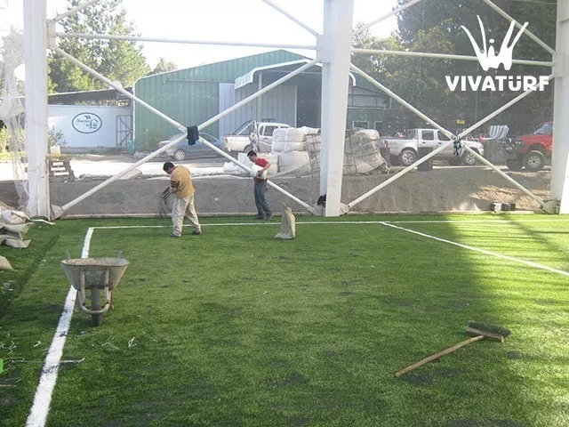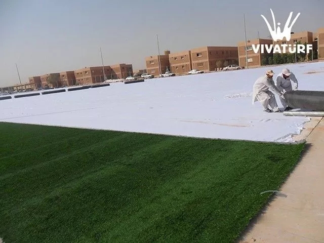 足球場人造草坪施工需要確?;A平整度達到95%以上及水泥石粉基質達到10%,其次,鋪設人造草坪,在鋪設過程中發現地面不平整、基質中摻雜雜質,則需要及時修復并清掃現場。