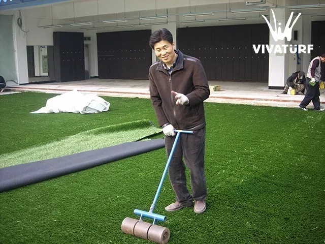 2.碾壓時足球場人造草坪與地面充分接觸并且碾壓方向要一致,不可反復碾壓。