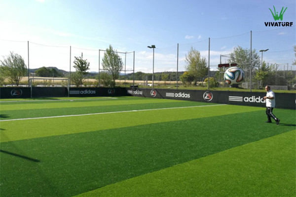 單純說免填充人造足球草坪,其實并不能替代填充了顆粒的傳統(tǒng)人造草,因此必須要增加減震墊的環(huán)節(jié)。VIVATURF免填充足球草坪系統(tǒng)正是這樣一個由免填充人造足球草坪+減震墊所組成的一個完整的制成品,可以直接鋪裝使用。
