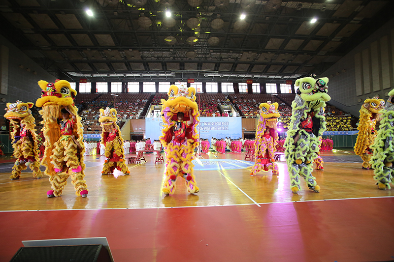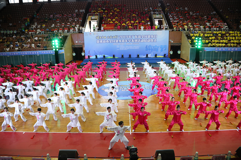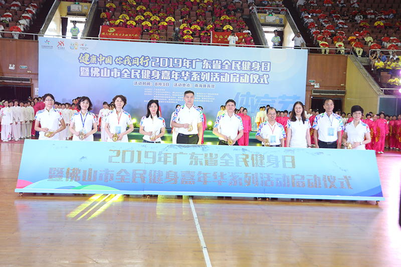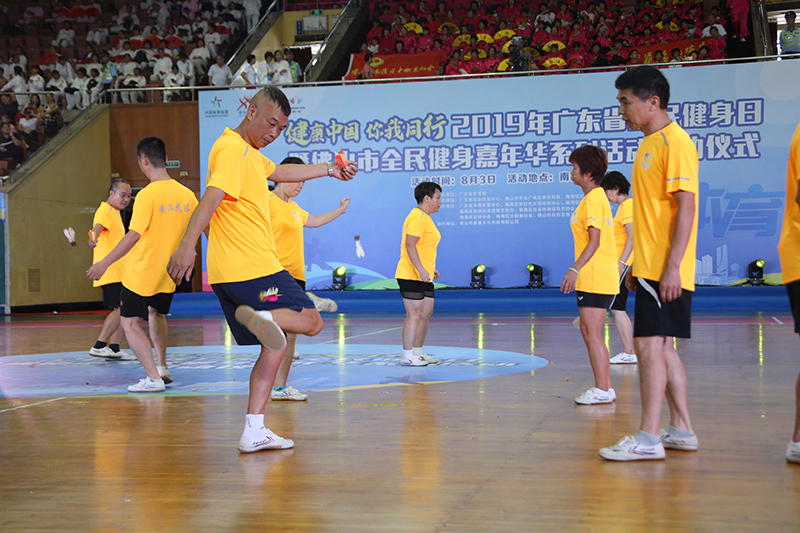 啟動(dòng)儀式及節(jié)目表演現(xiàn)場(chǎng),近600名來(lái)自廣州市和佛山市南海區(qū)的群眾代表以舞龍舞獅、健身氣功、太極、健身操、花式毽球、廣播體操等體育健身活動(dòng)展示的形式,共同為2019年廣東省“全民健身日”活動(dòng)拉開(kāi)帷幕,大力宣傳全民健身,吸引更多群眾主動(dòng)參與健身。