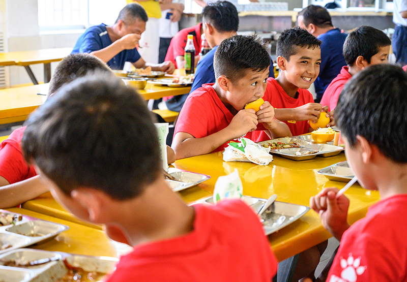 7月29日,廣東省體育局副巡視員王衛(wèi)東一行來到竹料訓練基地,看望慰問疏附縣少年足球隊球員及足球援疆工作組,充分肯定了足球援疆取得的成效,鼓勵小球員再接再厲勇創(chuàng)佳績,為促進民族團結作貢獻,隨后向隊員們送上由體彩公益金資助的專業(yè)足球裝備以及精美禮品。訓練期間,省足球運動中心為少年隊提供了高級別的真草訓練場地以及訓練器材。除了硬件設施的保障,中心還為孩子們安排了運動員宿舍,三餐提供地道美味的新疆菜,讓遠離鄉(xiāng)土的少年隊小朋友感受到家一般的溫暖。
