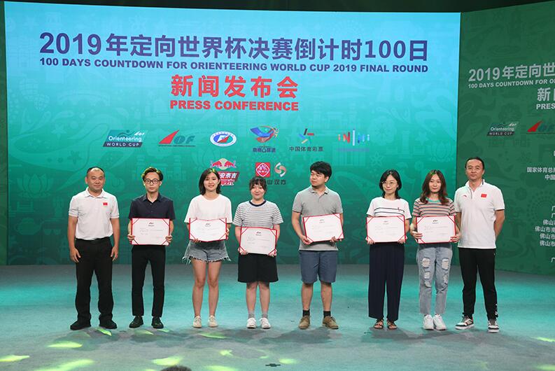 隨后,“定向世界杯決賽倒計時100天”儀式正式啟動,賽事會徽及定向世界杯官網(wǎng)亦正式發(fā)布。據(jù)悉,賽事會徽的征集采用設(shè)立獎項、面向公眾的方式進(jìn)行。發(fā)布會上,還向賽事會徽設(shè)計金銀銅獎共10名獲獎?wù)哳C發(fā)證書。