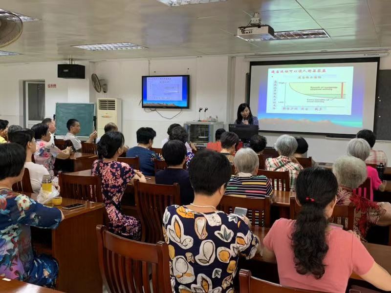 除了開展體質測試外,本次活動還邀請了廣州大學體育學院的李爽教授為老年人進行了題為“運動與健康”的講座,李教授結合老年人生活行為特征及普遍存在的健康問題,把一些慢病預防的方法,以及如何通過科學運動來解決一些健康問題進行了生動的講解。課后,很多人向李教授請教自身健康問題的解決方法,并留下李教授的聯系方式,希望與李教授加強交流。