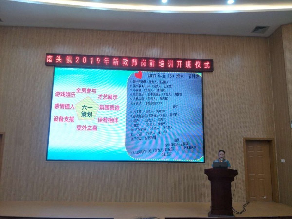 當天上午,文體教育局局長吳永高進行開班動員講話,他要求新教師要樹立遠大的目標,爭做“四有”好教師,要做到“堅持愛崗敬業不動搖”、“堅持學習不自滿”、“扎實工作不浮躁”、“樹立目標助成長”,更好地為南頭鎮教育事業發展做出貢獻。鎮黨委委員薛焯明介紹了南頭鎮近年來經濟發展和教育事業發展的情況,他要求新教師要不忘初心,牢記使命,努力辦讓南頭鎮人民滿意的教育。為了南頭教育事業更好地發展,要求新教師做到“責任要定位”、“工作要到位”、“思想要換位”和“問心要無悔”這四個要求。接著,教育事務指導中心主任謝桂華主任就圍繞如何成為好教師和造就好課堂,結合教學案例給青年教師開展了職業理想教育教育專題講座——《好老師,好課堂》 。講座指出“課堂是教師智慧成長的主陣地”和“教師是課堂有效生成的主導者”這兩個觀點,隨著課程的改革,新教師建設的課堂應該突出學生的“自主、合作、探究“的課堂。最后,升輝小學的一線優秀教師李蘭蘭給新老師分享工作的經驗,在教師成長專題講座中,她分別從“態度”、“團隊”和“能力”這三方面闡述了她如何在短短幾年迅速成長,她強調了態度決定一切,新教師要善于抓住機會提升自己。