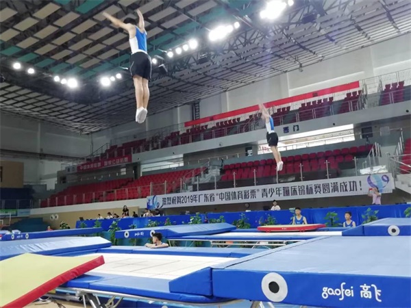2019年廣東省“中國體育彩票”青少年蹦床錦標賽本周則在廣寧縣體育館落幕,來著全省各地的10支代表隊共200名運動員在3天賽程里展開了激烈的角逐。本次比賽是歷屆青少年蹦床錦標賽參賽人數、項目設置、獎牌數最多的一次,總共決出了24枚金牌,亮點項目是雙蹦床與雙人同步,也是今年省賽的新增項目。
