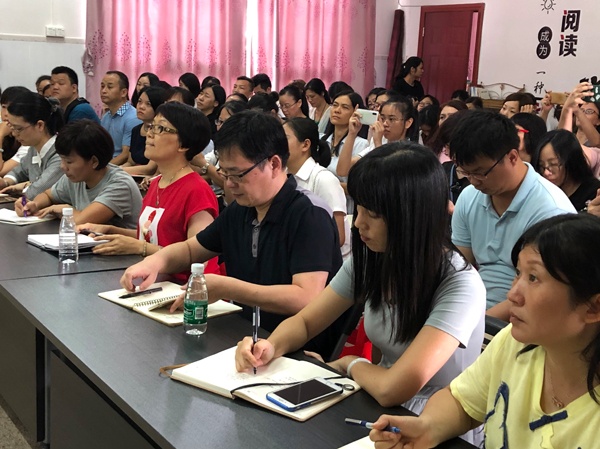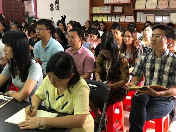 在談到新學期的德育工作如何開展時,阮秀迎老師要求各校各幼兒園要始終堅持落實立德樹人為中心 ,依托《中小學德育工作指南》,做到“重點工作跟到位,常規工作抓到位”,利用中華人民共和國成立70周年、教師節、中秋節等重要時間節點,積極探索“六育人”的校本途徑,在師生中弘揚和踐行社會主義核心價值觀。同時就進一步抓好預防未成年學生性侵、加強心理健康教育、創文、民辦德育督導、德育特色創建、團隊建設等展開部署。號召全體沙溪德育人積極總結和傳承“德育導師制”、“德育常規精細化管理”、“愛校教育”、“一普訪五多訪”、“影視教育”等沙溪德育好經驗、好做法,在新的學年把沙溪德育做精做細做實,做出特色和品牌。