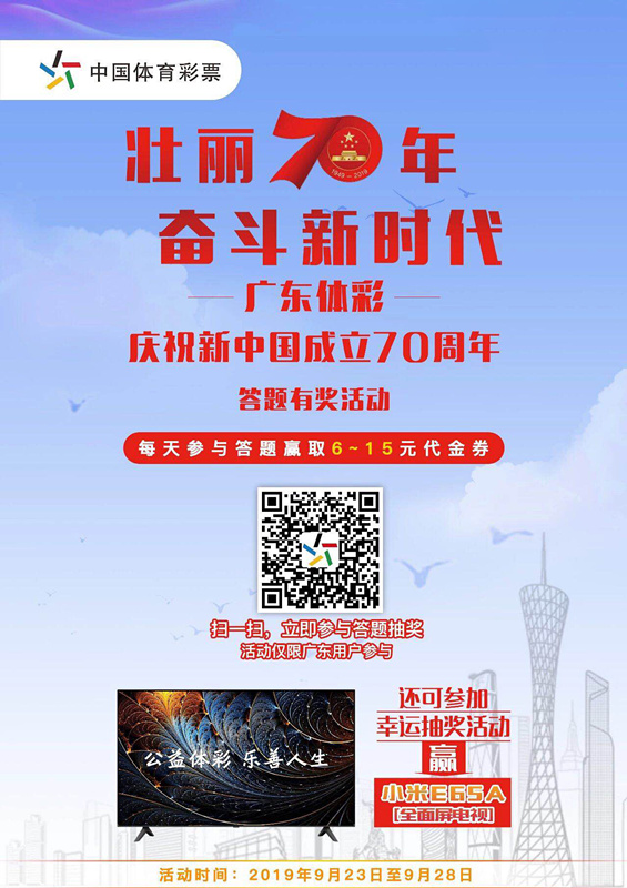 廣東體彩重磅推出“慶祝新中國成立70周年”答題有獎活動,目前累計5萬多人參與該活動!精彩繼續(xù),大家繼續(xù)來參加吧!