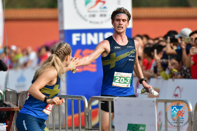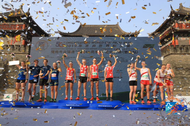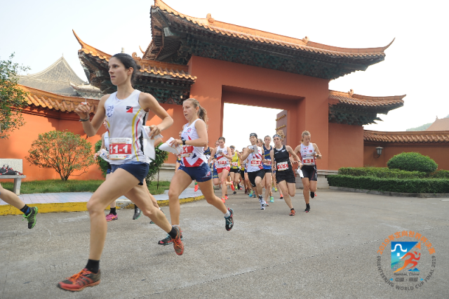 10月27日在南海影視城進行的比賽有兩場,首先進行的是定向世界杯決賽短距離混合接力賽。短距離混合接力賽是團隊賽,考驗團隊的實力和配合度,由四人組成的團隊“短兵相接”,最先通過終點者勝出。接力賽變數較多,成績可預見性低,從而也成就了其觀賞性強的特點,無論是參賽選手還是觀眾都能很好地感受到比賽激烈緊張的氣氛。此外,與第一場在西樵山進行的中距離賽不同,本場短距離混合接力賽所在的場地地理條件限制少、可跑性也較強。