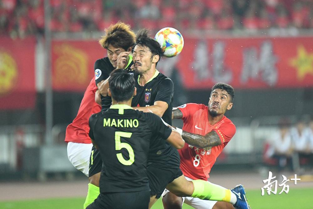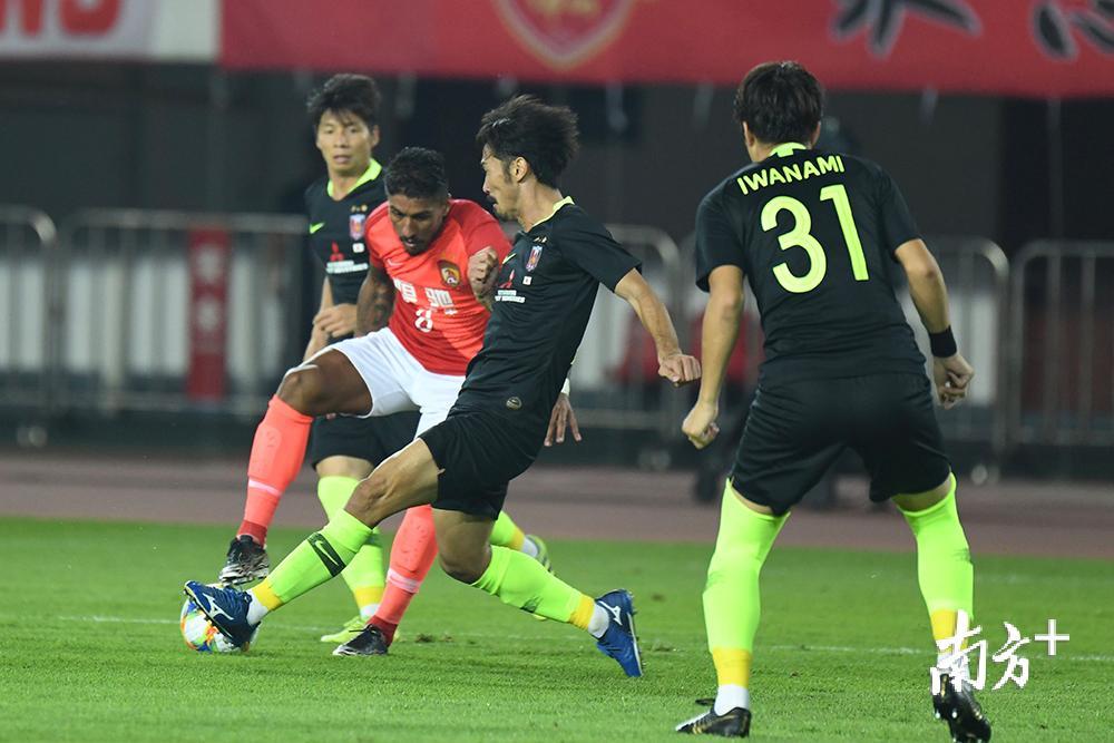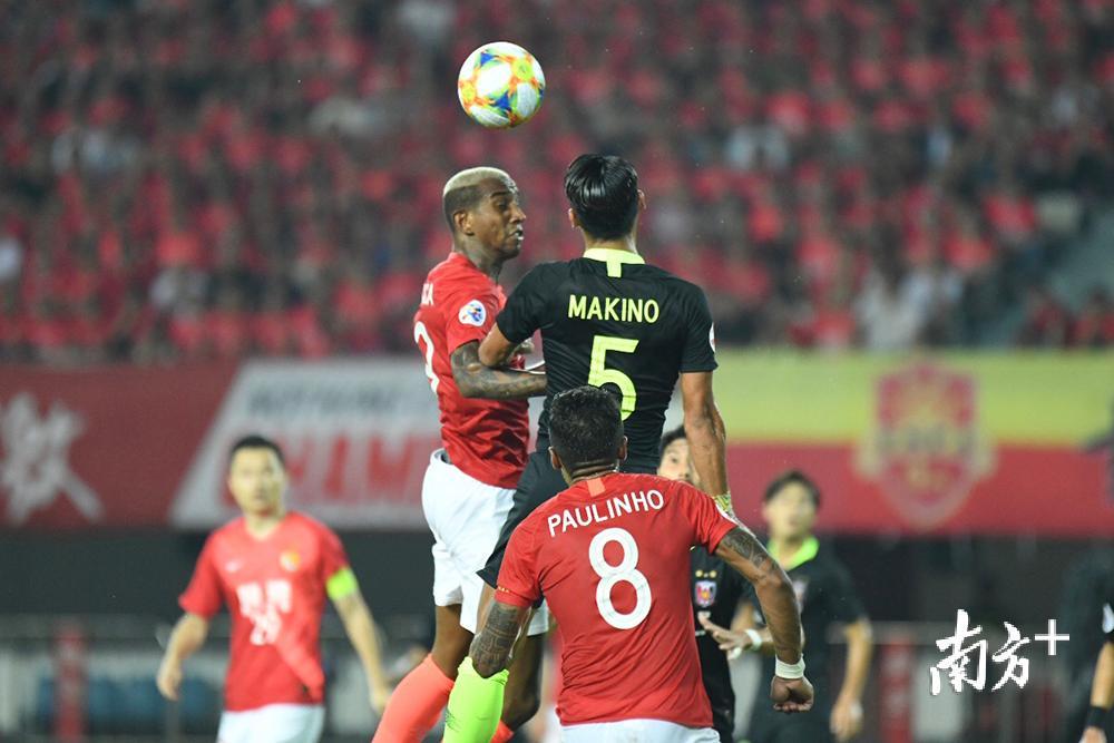 保利尼奧遭到對手夾擊。浦和紅鉆是亞冠防守最好的球隊之一,此前,浦和在亞冠賽場僅有一次凈負三球,恒大翻盤難度頗大。