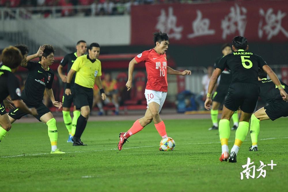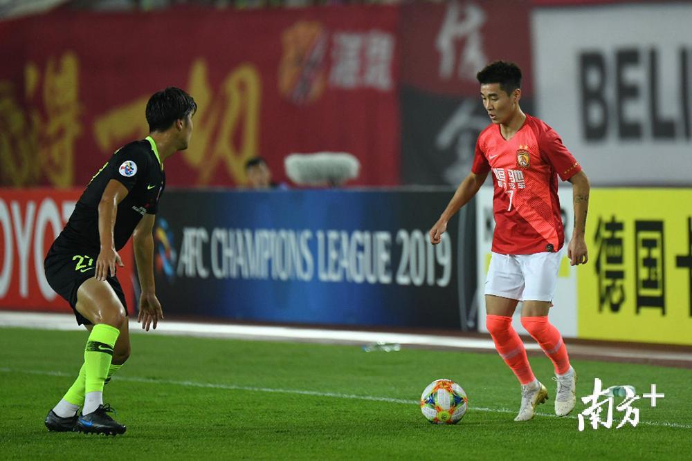 韋世豪面對防守球員,準備突破。本場比賽,韋世豪所在的恒大左路相當活躍,多次制造攻勢。