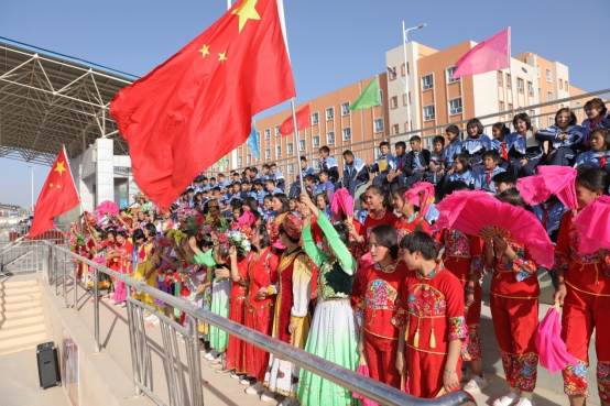 今年第三屆“石榴籽杯”頒獎有一個特別的安排,在頒獎之前,參賽的所有球隊和現場觀眾齊聲合唱《我和我的祖國》,當幾百名參賽的維吾爾族足球少年合唱“我和我的祖國一刻也不能分割,無論我走到哪里都流出一首贊歌;我的祖國和我像海和浪花一朵,浪是海的赤子海是那浪的依托”時,現場的畫面霎那間感動中國。