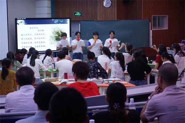 下午,培訓班的全體學員在班主任張帆老師的帶領下,來到了廈門市演武第二小學觀摩語文科組的現場教研活動。活動分為三個環節,第一個環節是“讀”領風騷朗讀沙龍活動,五年級組的四位老師將以“月”為意象的8首古詩詞巧妙地串聯在一起,用動聽的聲音,多樣的形式,帶領大家共同走進詩中的美好意境。第二個環節是“閱享時光”——教師專業“閱讀分享”活動,此次共享閱讀的書籍是《發展心理學》,主持人邀請了三位不同風格的老師,從不同的角度來分享讀書心得,其見解之獨到,讓人耳目一新。第三個環節是語文素養系列——關于“寫清楚”。低、中、高年級的教師代表給大家進行了教材分析,并介紹了他們的具體做法。整個教研活動嚴謹有序,內容異彩紛呈,學員們獲益良多。