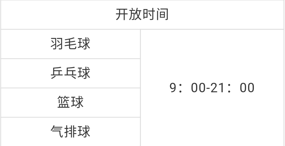 開放區域:羽毛球、乒乓球、籃球、氣排球
