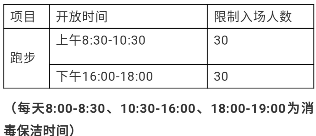 每次開放時間僅允許30人跑步,不得進行其他集體活動;