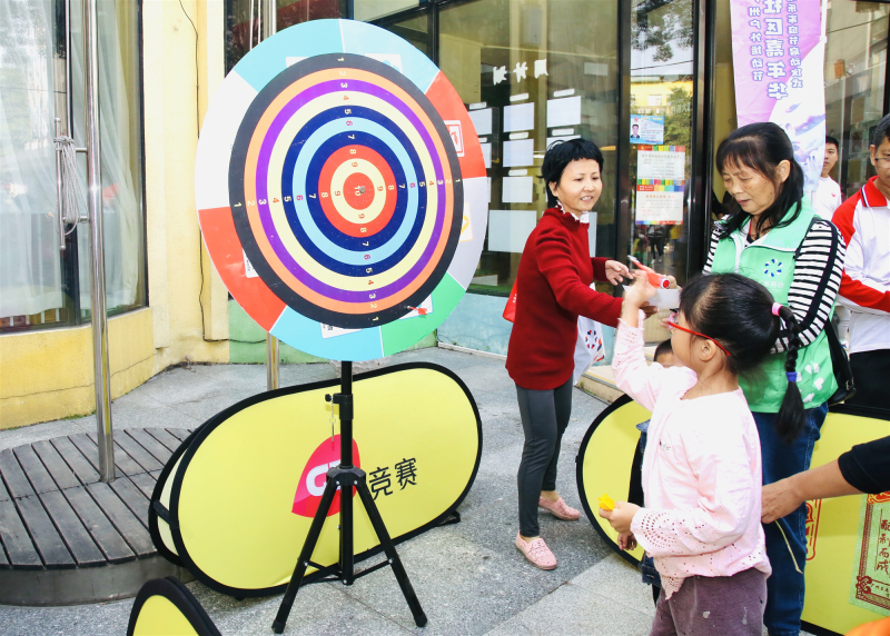 在分站活動啟動儀式上,廣州市廣播電視臺競賽頻道陳靖暉副總監(jiān)為南石頭街道紙南社區(qū)陳漢輝主任頒發(fā)了第五屆廣州戶外運動節(jié)體育進社區(qū)嘉年華系列活動優(yōu)秀社區(qū)獎。本次活動按照常規(guī),設(shè)置了乒乓球擂臺賽和毽球擂臺賽以及6大老少皆宜的體育運動游戲攤位,參與的街坊可以憑集點卡的點數(shù)兌換精美的禮品。讓記者驚訝的是,街坊們已經(jīng)熟知“體育進社區(qū)嘉年華”活動,說是一直有留意這個活動,這周終于把它給“盼”來了!一直生活在紙南社區(qū)的陳伯告訴記者:2001年,南石頭街道就獲得過“廣東省民族民間藝術(shù)之鄉(xiāng)”的稱號,街坊們都擁有文藝基因,文體不分家,這次體育進社區(qū)來到南石頭,必會擦出新火花。