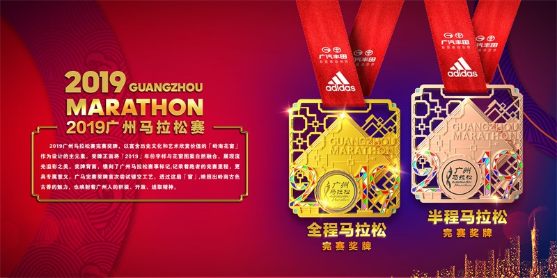 據透露,今年的廣州馬拉松賽獎牌由六福珠寶傾情贊助,以富含歷史文化和藝術欣賞價值的“嶺南花窗”作為主設計元素。獎牌正面將“2019”年份字樣與花窗圖案自然融合,展現流光溢彩之美。獎牌背面,鐫刻了廣州馬拉松賽事標記,記錄著跑者的完賽里程,更具專屬意義。廣馬完賽獎牌首次嘗試鏤空工藝,透過一扇“窗”,映照出嶺南古色古香的魅力,也映射著廣州人的積極、開放、進取精神。今年廣馬的戰袍也在發布會上正式亮相,參賽服采用男子背心、女子T恤的樣式,服裝整體風格時尚簡約、活力十足。