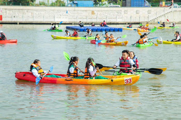 與此同時,活動現場還同步舉辦了皮劃艇市民體驗日活動。皮劃艇體驗區域內提供了安全又趣味豐富的各式活動,并配備專業教練進行教學指導,讓現場市民在體驗起航前,掌握相關水上運動知識。寬闊的水域上多艘競渡,潑水混戰,形成了一條獨特的風景線,引得岸上圍觀的市民也紛紛報名參與,感受秋日陽光下與珠江水共慶的魅力。