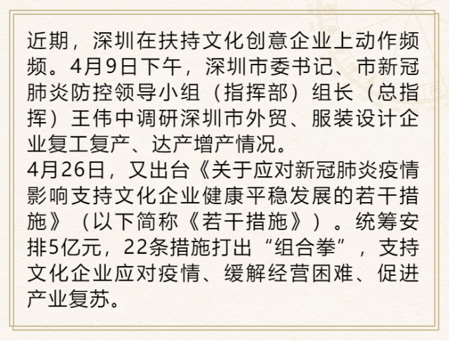 值得注意的是,其內容不但涉及給各類文化營業場所進行一定補貼,對文化企業進行租金費用減免等,優化文化企業服務、強化文化金融服務、引導培育新業態發展、加強產業發展支撐等內容更為今后企業的營商環境做好鋪墊。