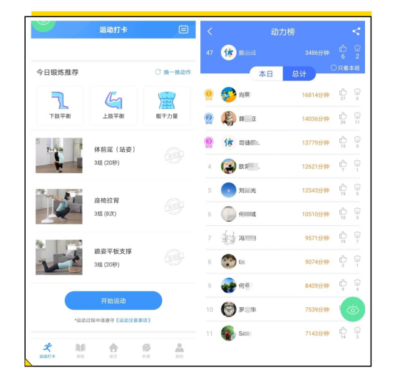 一起通過校體通的APP界面都能感受到大家參與打卡的熱情