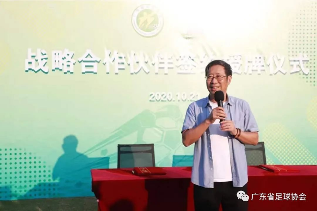 儀式上,廣東省足球運(yùn)動(dòng)中心主任、廣東省足球協(xié)會(huì)副主席程志文與朝向集團(tuán)董事長(zhǎng)陳朝行代表雙方簽署合約,程志文主任向陳朝行董事長(zhǎng)頒發(fā)“戰(zhàn)略合作伙伴”榮譽(yù)牌匾。