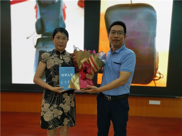 會上,7名新教師和1名新校醫進行自我介紹,表達了對投身教育事業的憧憬和決心。迎新辭舊,緊接著進行的是退休教師的歡送儀式。英語科組的畢可慧老師發表退休感言,回顧三十多年的教學生涯,歷數仙中的難忘點滴,飽含了不舍與感恩之情。在一片溫馨的氣氛中,大家歡送畢老師。