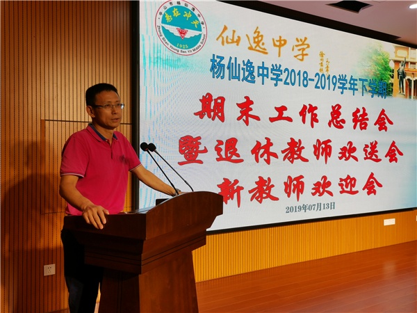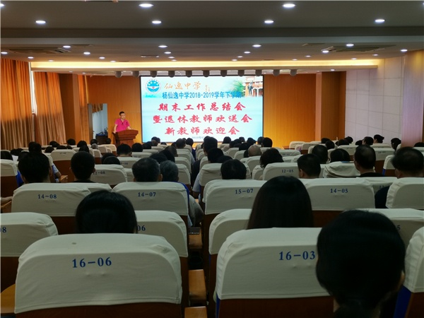 7月13日,楊仙逸中學召開期末工作總結會暨退休教師歡送會、新教師歡迎會。全體教職工參加了會議。