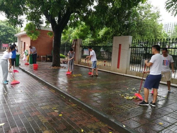 會(huì)后,雖然天下著微雨,但卻未影響黨員們的熱情。黨員同志們滿懷激情拿著工具來(lái)到指定地點(diǎn),有的用手拔除雜草、撿起花圃中的紙屑,有的拿著掃把清掃地面,有的拿著垃圾鏟推著垃圾桶清潔垃圾。支部領(lǐng)導(dǎo)身先士卒,擼起袖子,對(duì)衛(wèi)生死角進(jìn)行徹底清掃。清掃過(guò)程中,黨員同志們不怕臟、不怕累,互相配合,大家衣服弄臟了、濕透了,依然干勁十足。他們以實(shí)際行動(dòng)讓黨員這面旗幟在創(chuàng)文鞏衛(wèi)活動(dòng)中高高飄揚(yáng)