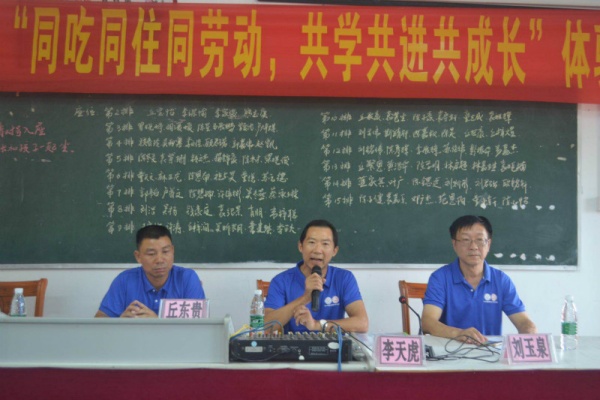 經過了四個多小時的車程,海洲初級中學的師生們到達了美麗整潔的英德市西牛中學。下午三點,兩校師生及西牛中學結對的學生家長參加了體驗式研學活動開幕式。開幕儀式由西牛中學副校長丘永鋒主持,首先是西牛中學校長丘東貴致歡迎辭,他代表西牛中學全體師生對海洲初級中學師生表示熱烈的歡迎,并表達了對此次活動的美好希望。接著,西牛中學學生劉銘傳和海洲初級中學學生吳雨寒分別代表牽手結對學生作了發言,他們在發言中,都表示要繼承優良傳統,發揚老一輩革命家艱苦奮斗、吃苦耐勞的精神,流露出對健康成長的渴望,表達了對組織這次活動的學校領導老師的感激以及對此次活動的期待。隨后,海洲初級中學校長李天虎發言,他對給予本次活動大力支持的西牛中學的領導和師生以及家長表示了衷心的感謝,他聯系學生核心素養的發展以及剛剛頒布的《中共中央國務院關于深化教育教學改革全面提高義務教育質量的意見》,強調了此次活動的重要性,通過課程育人、活動育人、實踐育人、協同育人,讓每一個學生都能健康幸福成長。他說,要成為擔當民族復興大任的時代新人,就要有高尚的品德、扎實的知識、強健的體魄、勞動的技能。李校長希望參加活動的學生們能珍惜這次難得的機會,學會自立、學會勞動、學會溝通、學會感恩。西牛中學副校長丘永鋒對本次活動做了詳細安排,海洲初級中學副校長劉玉泉對本次活動的注意事項提出了要求,并預祝此次活動取得圓滿成功。
