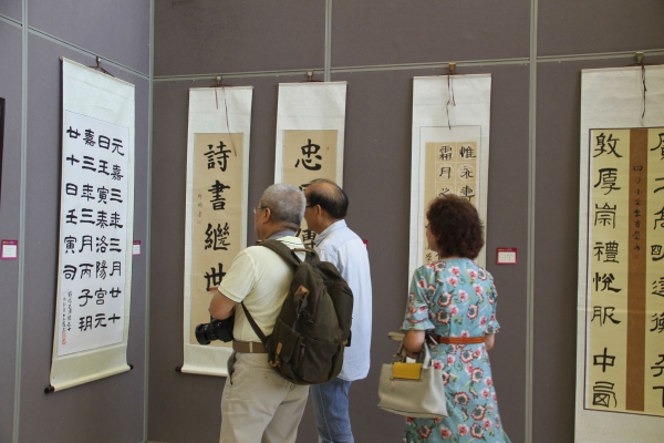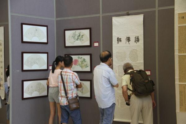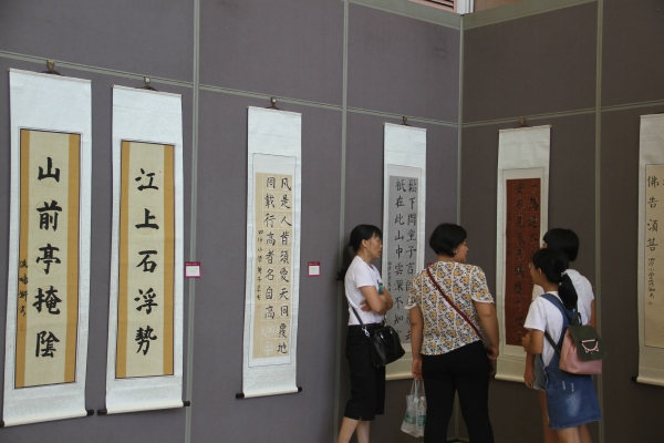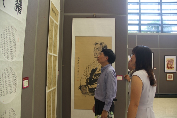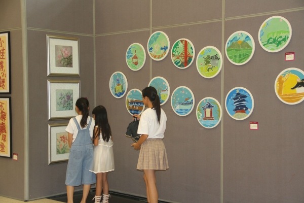 據(jù)歐慧芳現(xiàn)場(chǎng)介紹,該校一向重視藝術(shù)教育,秉承“以藝立品,學(xué)藝助學(xué)”的藝術(shù)教育方針,加強(qiáng)師資隊(duì)伍建設(shè),打造了一支德藝雙馨的高素質(zhì)專業(yè)教師隊(duì)伍;注重藝術(shù)室場(chǎng)配備,美書(shū)學(xué)科專任教師均配備個(gè)人工作室;致力教育科研提升,美術(shù)學(xué)科有省、市、鎮(zhèn)級(jí)的立項(xiàng)課題正在研究,營(yíng)造了濃郁的藝術(shù)教育教學(xué)氛圍。這次書(shū)畫(huà)展從7月10日開(kāi)始至21日結(jié)束。展出的作品,除了有書(shū)畫(huà)界老前輩們的特邀書(shū)法作品外,其余的都是師生們的作品,有書(shū)法、國(guó)畫(huà)、剪紙、簡(jiǎn)筆畫(huà)和線描畫(huà)。這是師生們辛勤勞動(dòng)的成果。這次書(shū)畫(huà)展,
