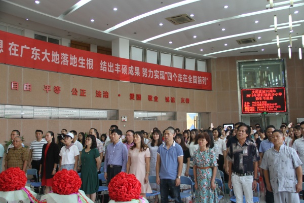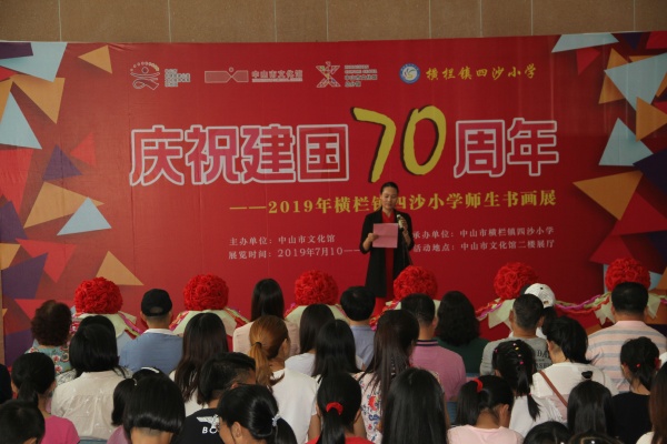 七月流火,翰墨飄香。在建國(guó)70周年即將來(lái)臨之際,四沙小學(xué)慶祝建國(guó)70周年師生書(shū)畫(huà)展7月10日上午在中山市文化館隆重開(kāi)幕。中山市文化館副館長(zhǎng)方文女士、中山市教育學(xué)會(huì)陳春艷會(huì)長(zhǎng)、中山市文化館公共文化服務(wù)部主任邵秉英女士、橫欄鎮(zhèn)關(guān)工委主任吳淑玲女士、中山市老年書(shū)畫(huà)協(xié)會(huì)會(huì)長(zhǎng)歐淑瑜女士等市、鎮(zhèn)相關(guān)領(lǐng)導(dǎo)蒞臨指導(dǎo)。四沙小家長(zhǎng)委員會(huì)全體成員、親子志愿者和教師300多人出席了開(kāi)幕式。